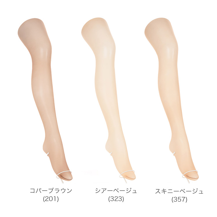 コパーブラウン(201)、シアーベージュ(323)、スキニーベージュ(357)、ベビーベージュ(378)、ヌーディベージュ(433)、ブラック(480)