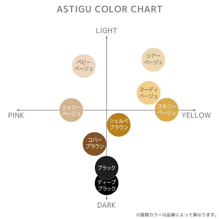 ピンクオークル(355)、オークル(365)、イエローオークル(377)、イエローベージュ(477)