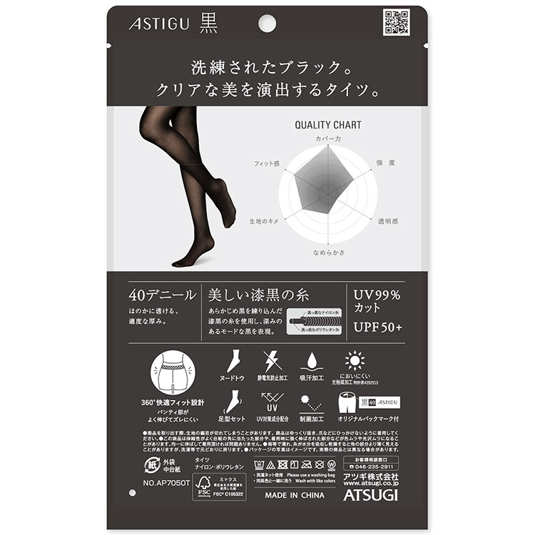 ほのかに透ける適度な厚み。洗練された黒で格上の脚へ。