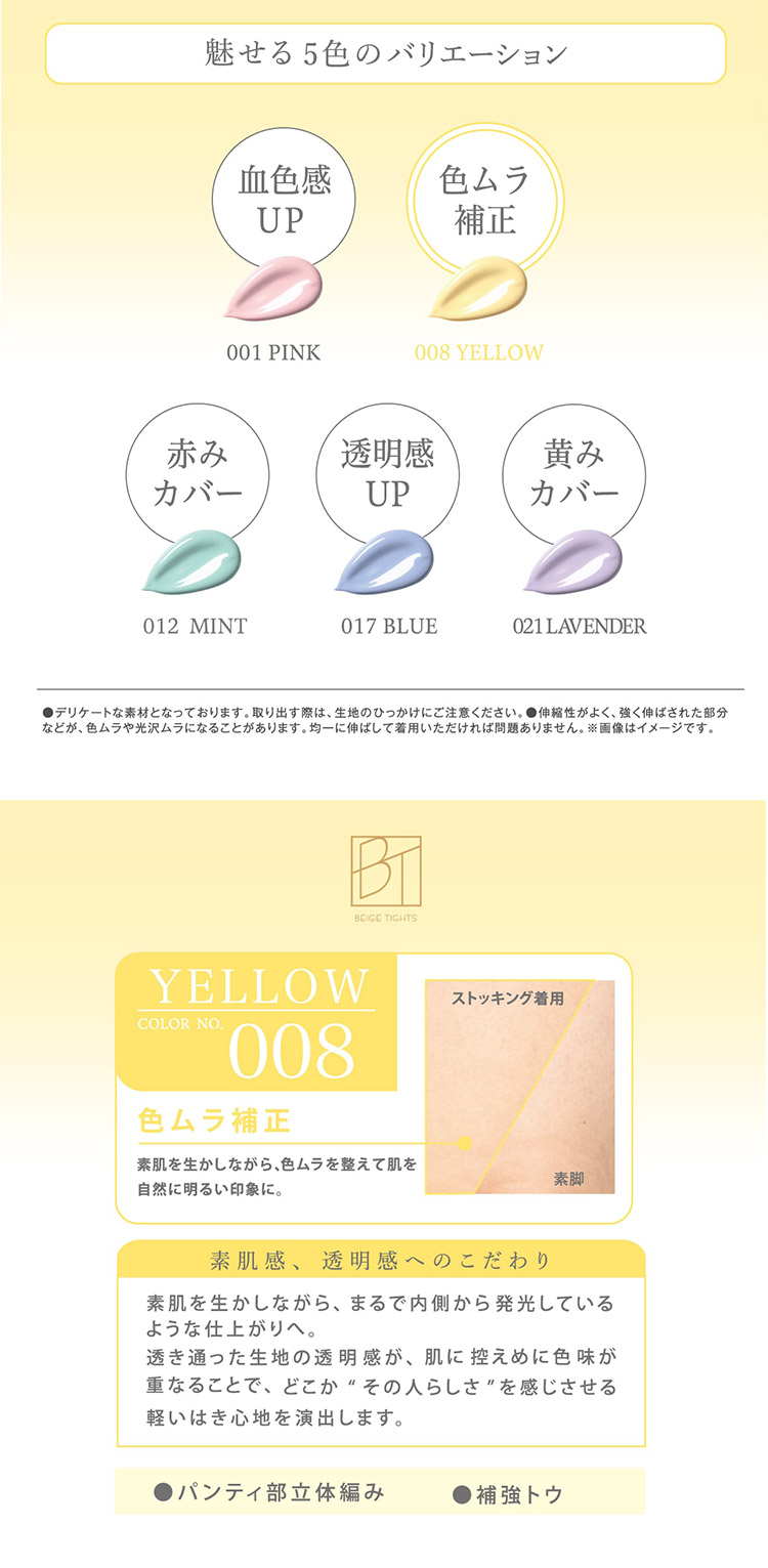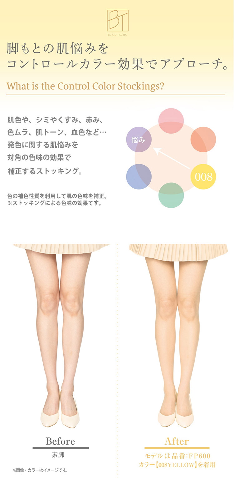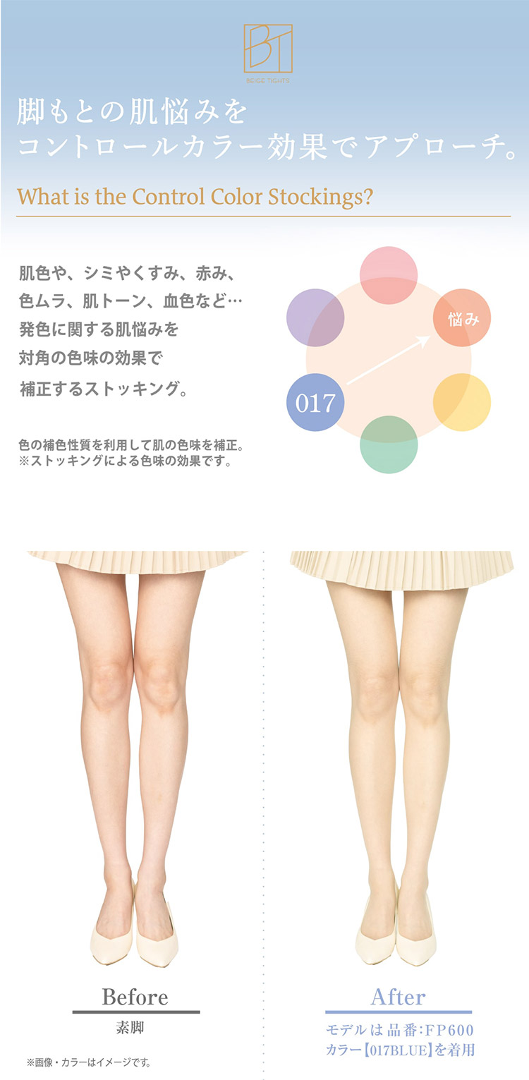 色の補色性質を利用して肌の色味を補正し、なりたい肌へ導くコントロールカラーストッキング。