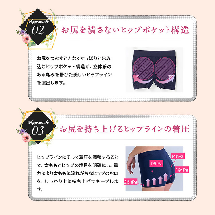 お尻を持ち上げ、丸みのあるヒップラインを演出。