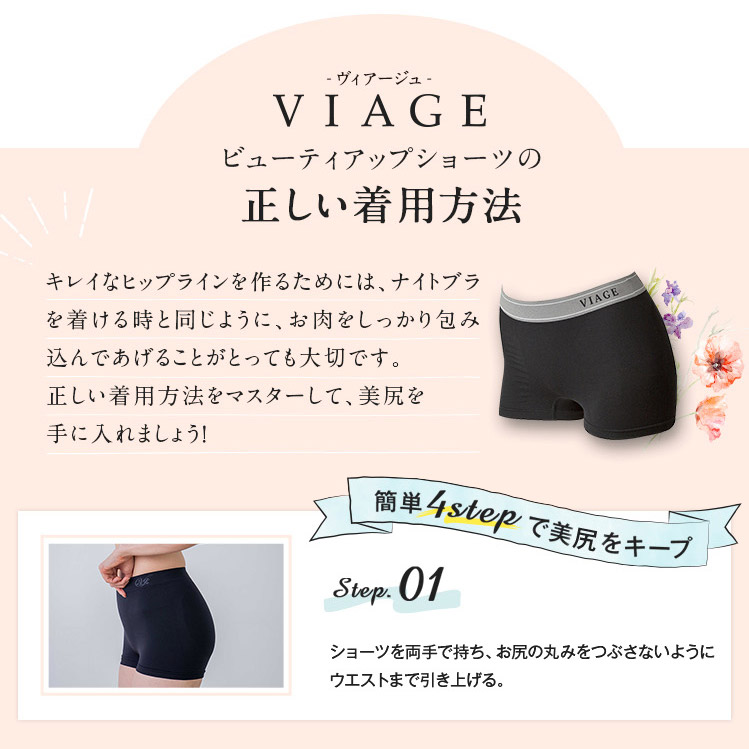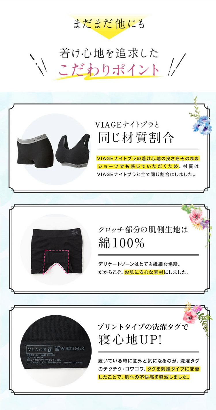 VIA-0003|VIAGE ヴィアージュ ビューティ アップ ナイトブラ セットショーツ ボーイレングスショーツ S/M/L