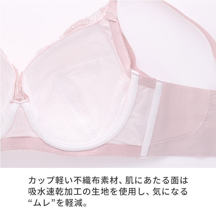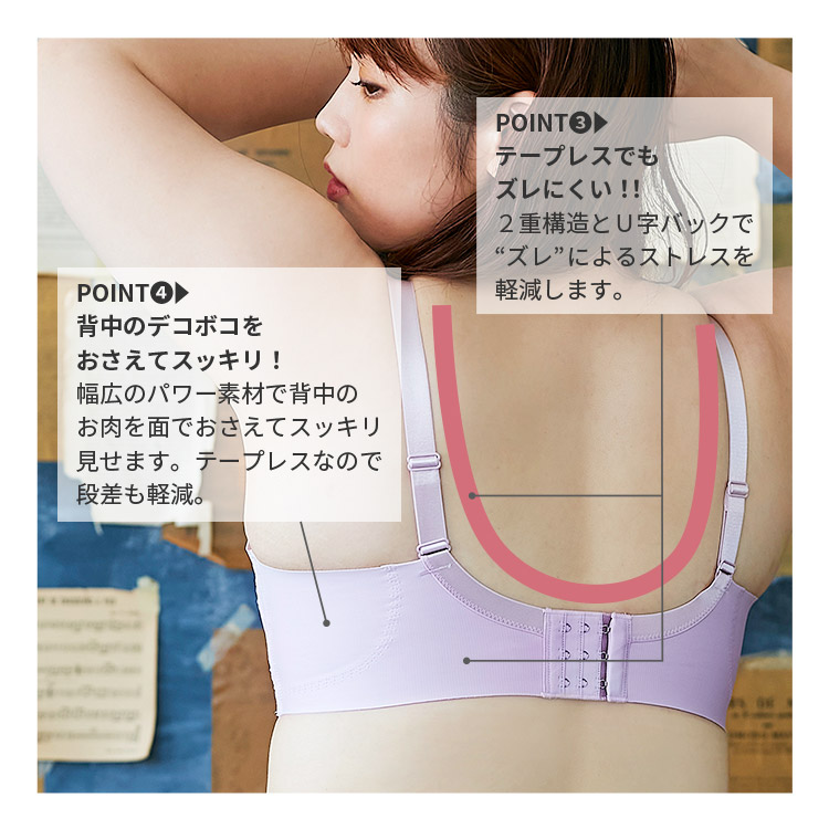 簡単に華奢見えするワイヤーブラジャーです。バストをコンパクトに見せてくれるからピッタリとしたアウターもキレイにキマる1枚です。