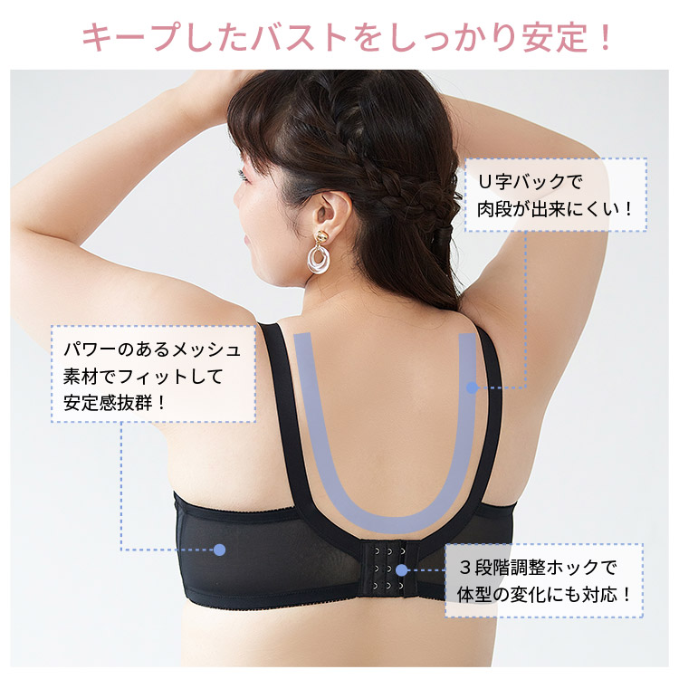 グラマーバストを”しっかりホールド”し バストの横流れを防いでキレイなシルエットをキープします。