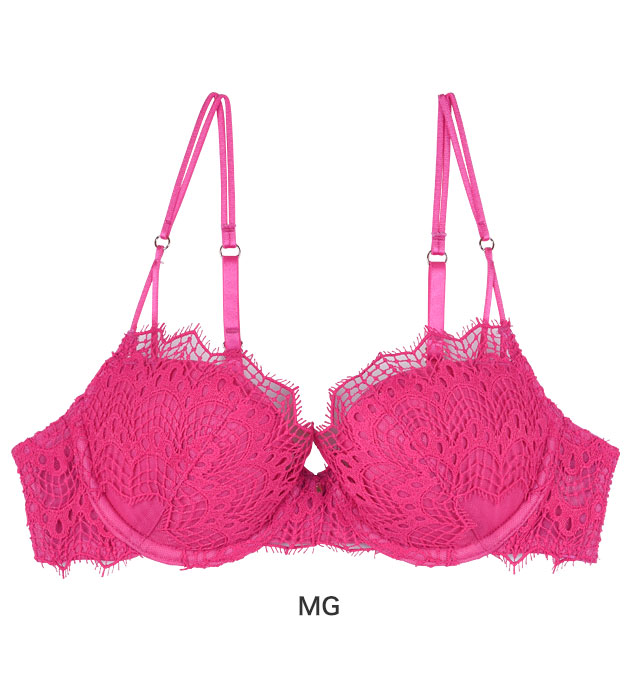 ストラップにマカロニテープを使用し、見えても下着っぽくないデザイン。カップとストラップをつなぐリングが華奢な印象を演出します。