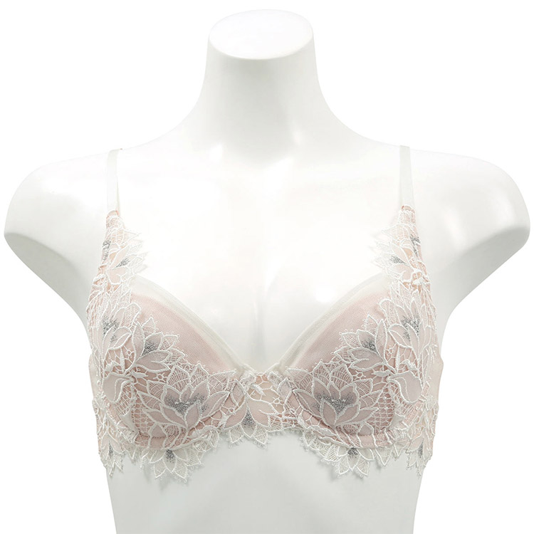 ショーツ・タンガはサイドとパックのチュール使いで、大人のキュートな一面をのぞかせて。