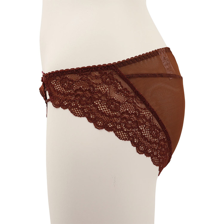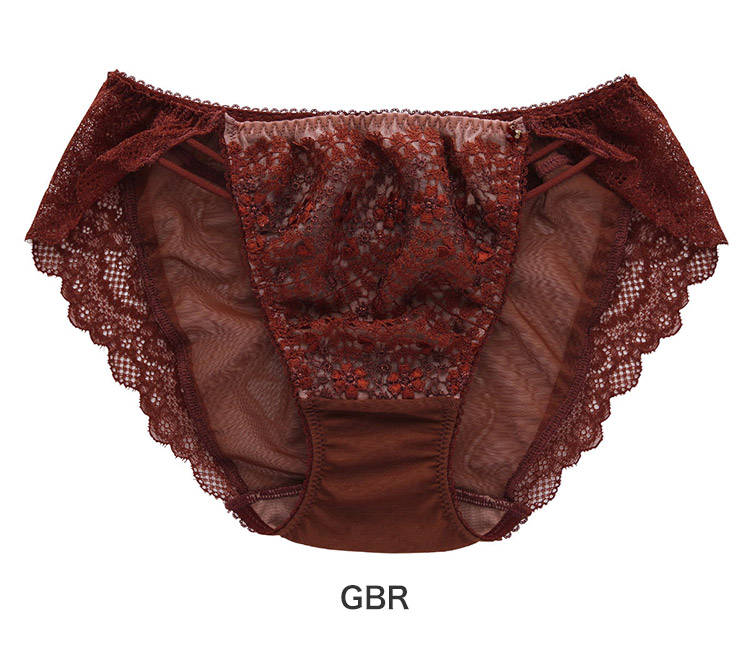フロントはマーキーの裏打ちで優しい肌あたり。レースの透明感を生かしながら透けをやわらげます。サイドから後ろ裾には薄手ののストレッチレースを施し、アウターにひびきにくくなっています。