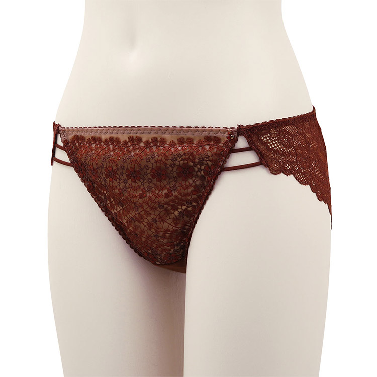 フロントサイドのマカロニテープや、バックのパワーネットのカッティング。細部まで手の込んだデザインのショーツ。