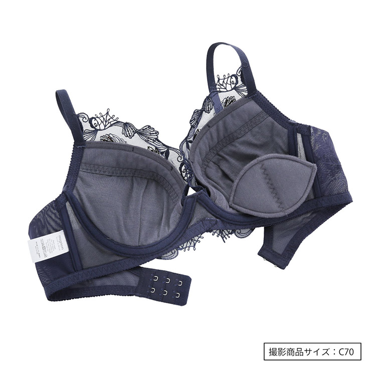 ふんわりソフトなカップが胸を包むワイヤーブラ。バックは段差の出ないパワーネット。