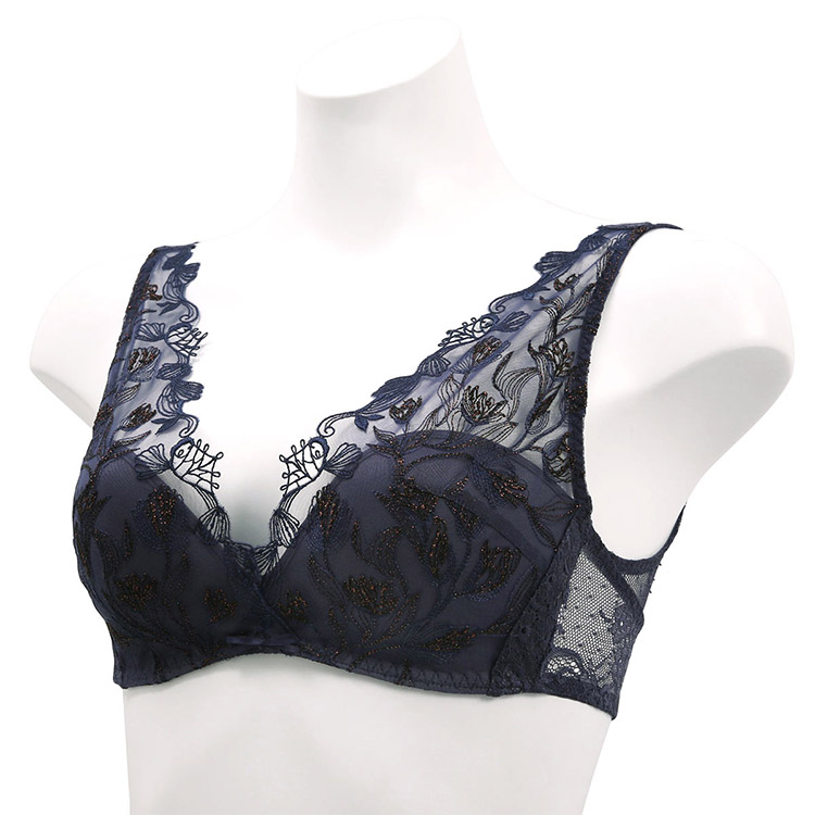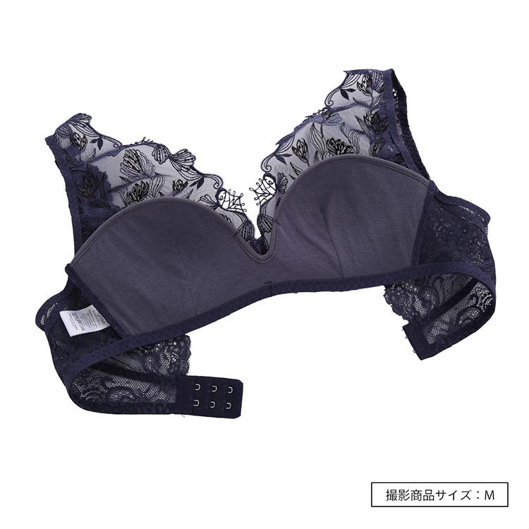 ふんわりソフトなカップが胸を包むワイヤーブラ。バックは段差の出ないパワーネット。