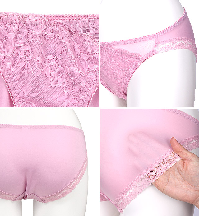 バック脚ぐりはレース使いでボトムに響きにくく、エレガントに。