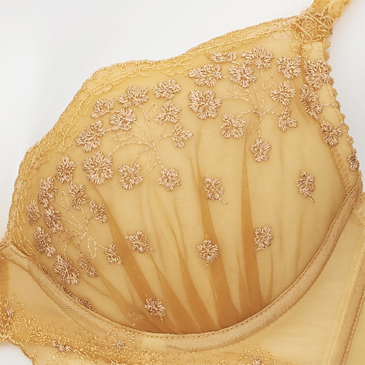 肌触りの良いカップでバストを包み込み、脇流れ防止のサイドボーンでしっかりとホールドしてふっくらとしたデコルテをメイク。