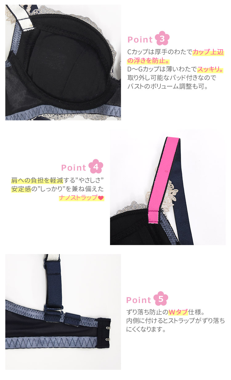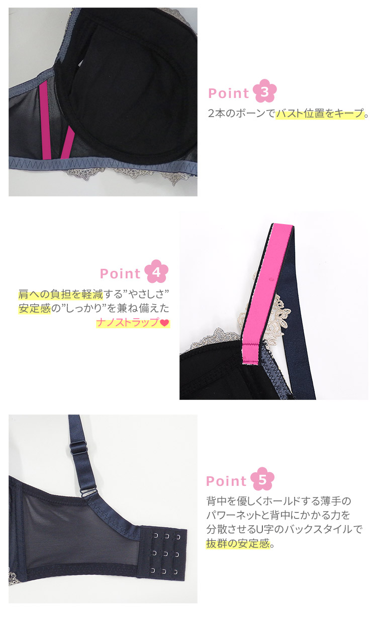 肌側の上下辺とストラップのゴムにナノ素材を使用。