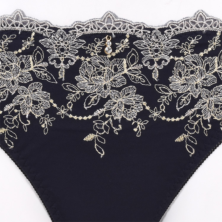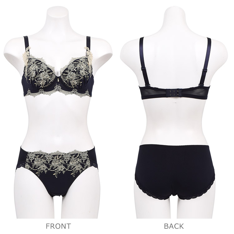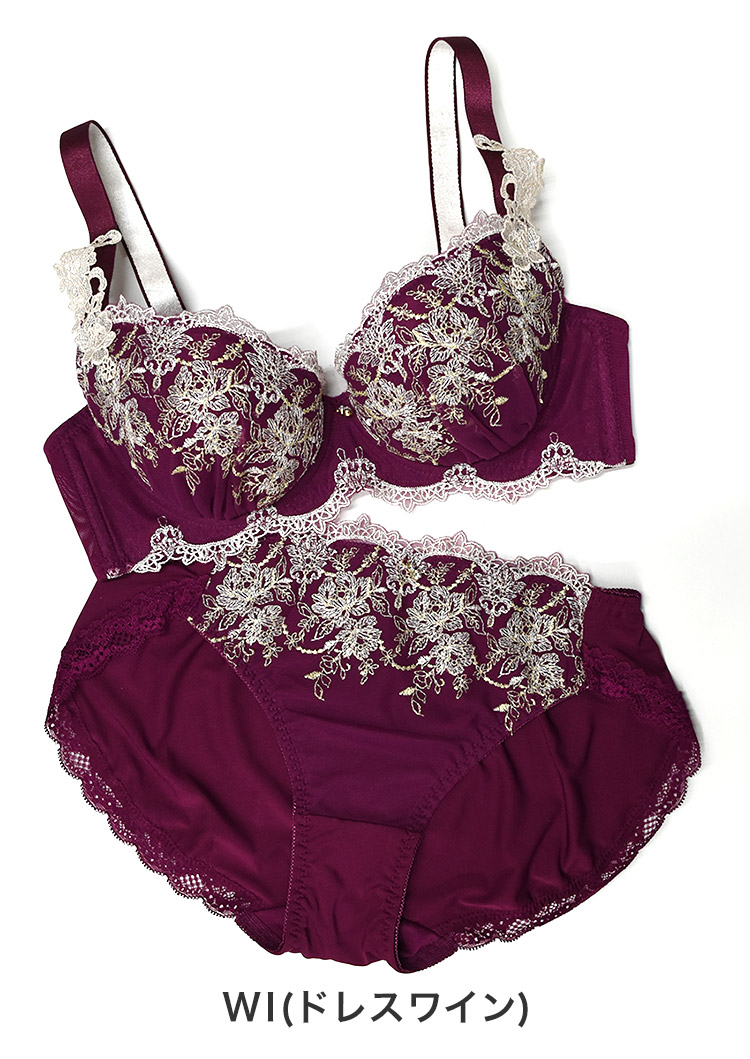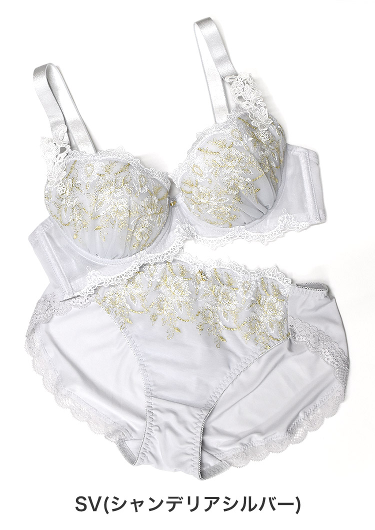 ゴールドの刺繍をたっぷりと入れた煌びやかなオリジナルレースが華やかなデザイン。