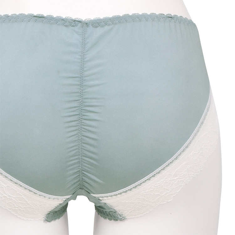 バックにはギャザーを入れて、ヒップを包み込み立体感がきれいに出る仕様。