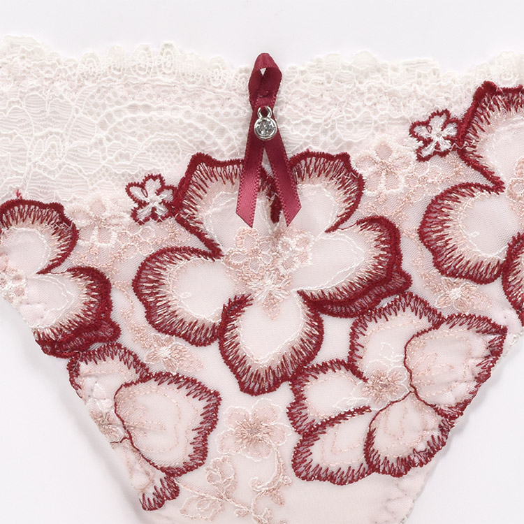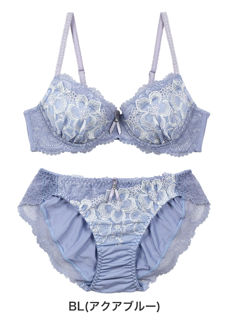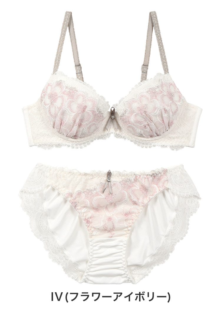 ふわふわの触りごこちがやみつきになる人気のふわさらシリーズから、大小のお花をぎゅっと敷き詰めたデザインのチュールレースをたっぷりと使用、お花の生き生きとした様子をラメ糸で表現したデザイン。