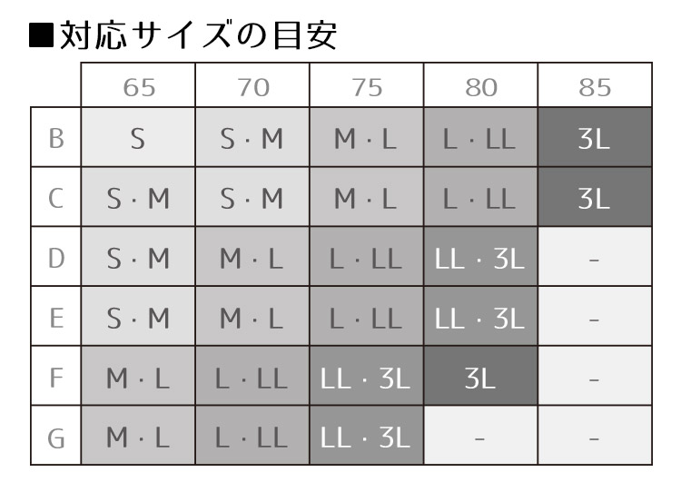 パッド内蔵カップ(S-L下厚パッドタイプ、LL-3L厚みなし薄手タイプ)