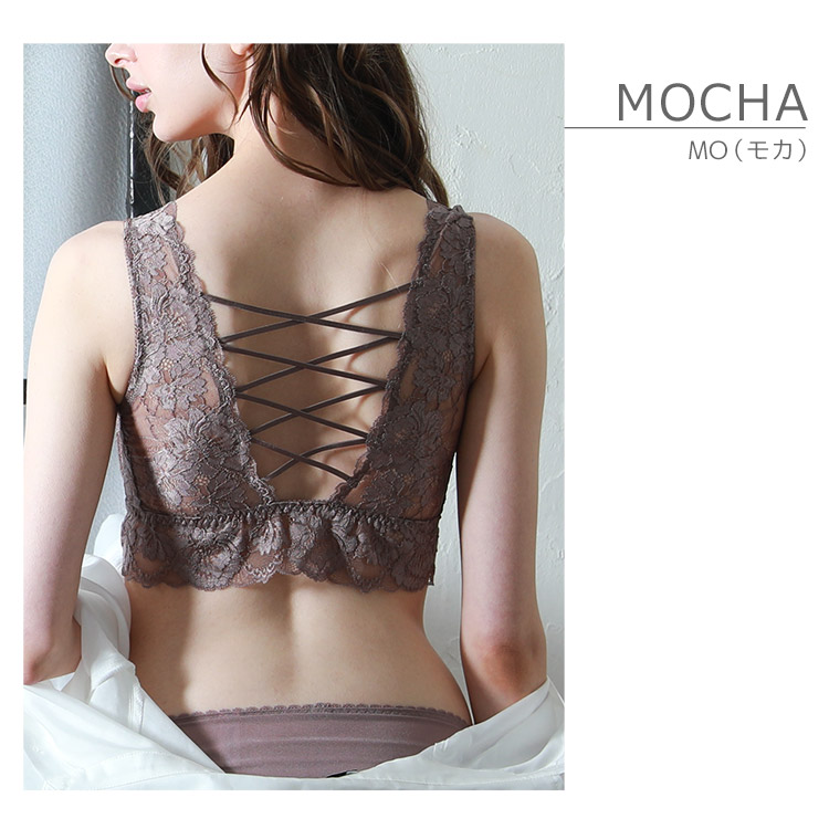 ストラップまでつながったレースはバストをすっきりと整えて引き上げます。