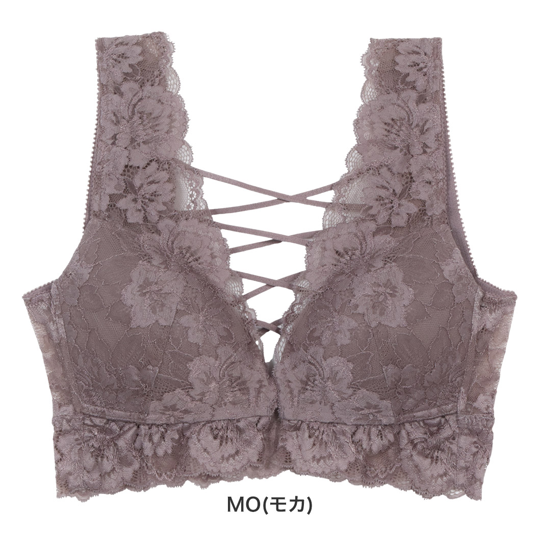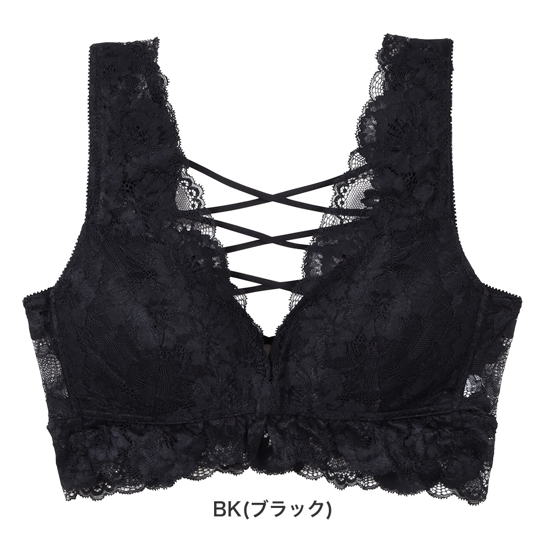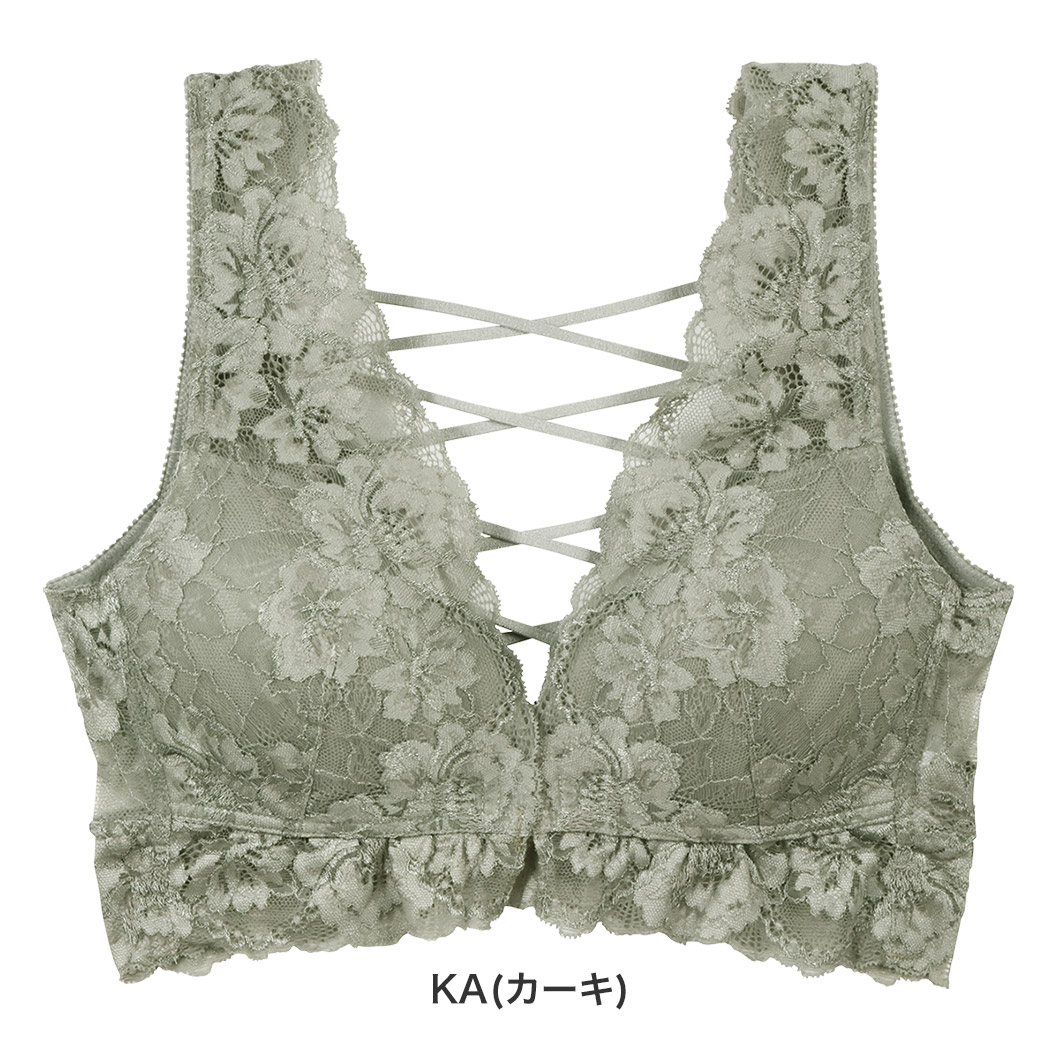 華やかな中花デザインのストレッチレースに、マカロニテープのクロスデザインが、思わず見せたくなるようなデザイン。