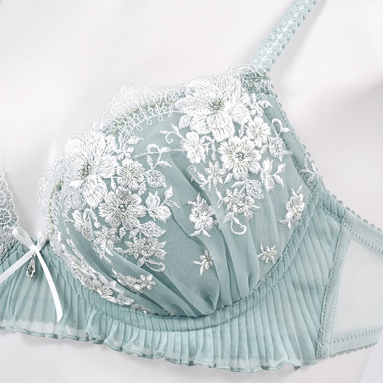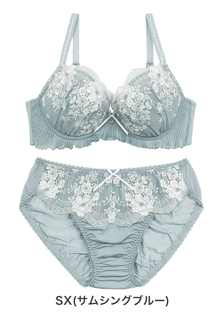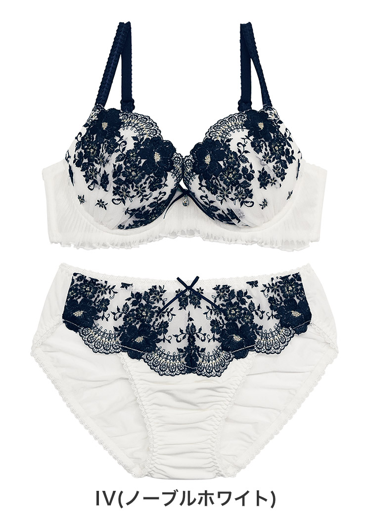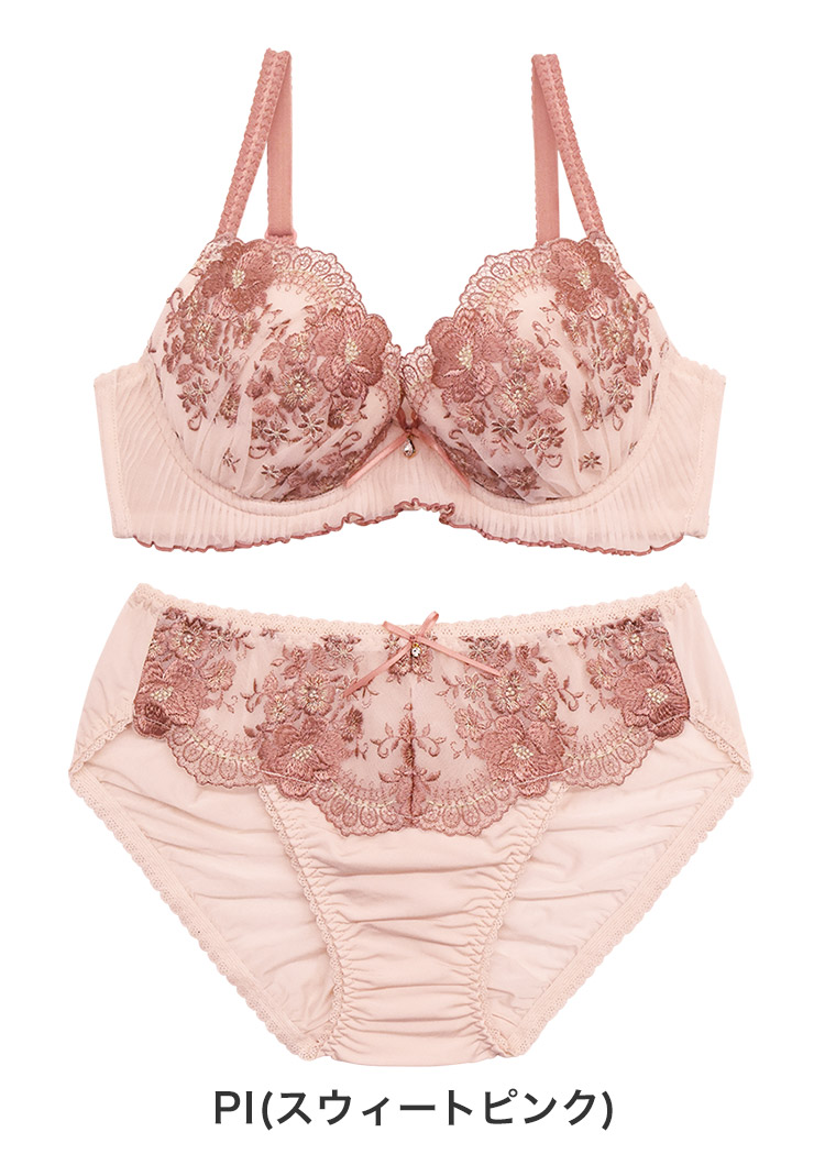カップには大小様々なお花が描かれた、ラメ糸を使用した華やかなチュールレース。
