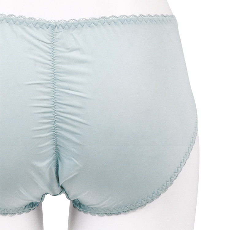 バックにはギャザーを入れて、ヒップを包み込み立体感がきれいに出る仕様。