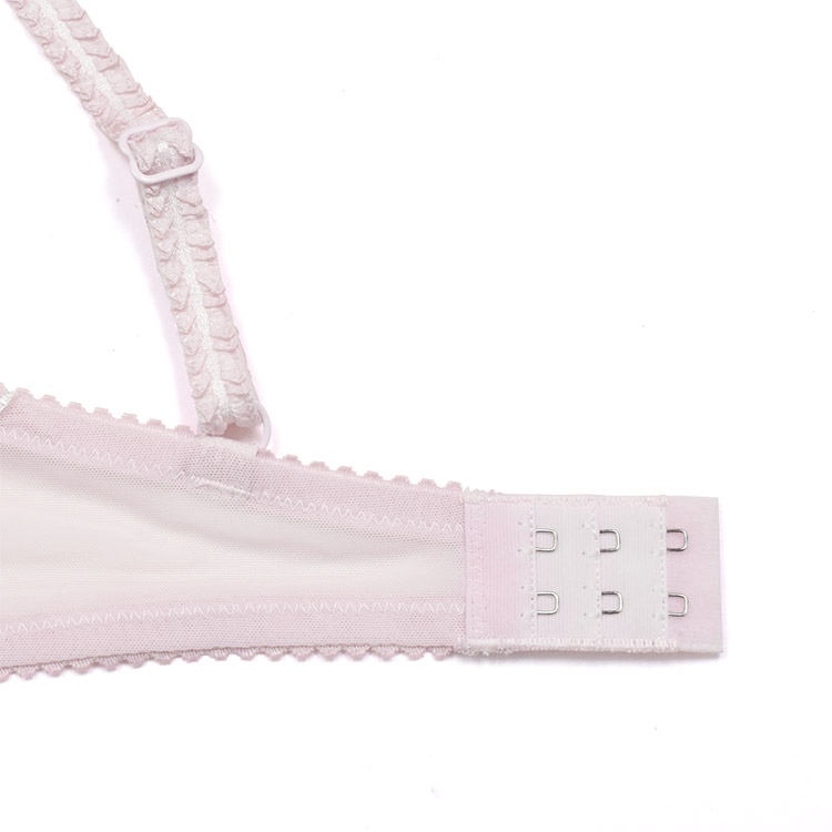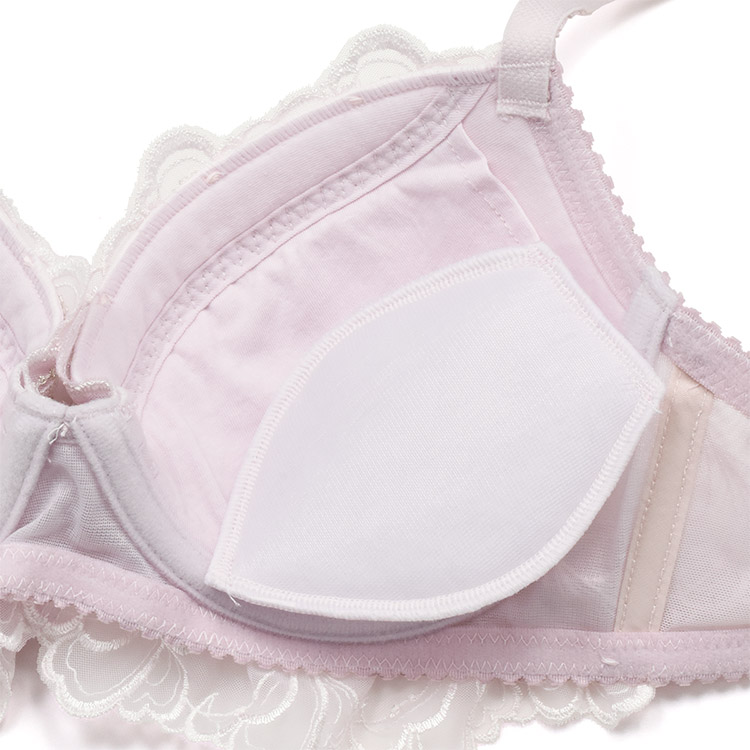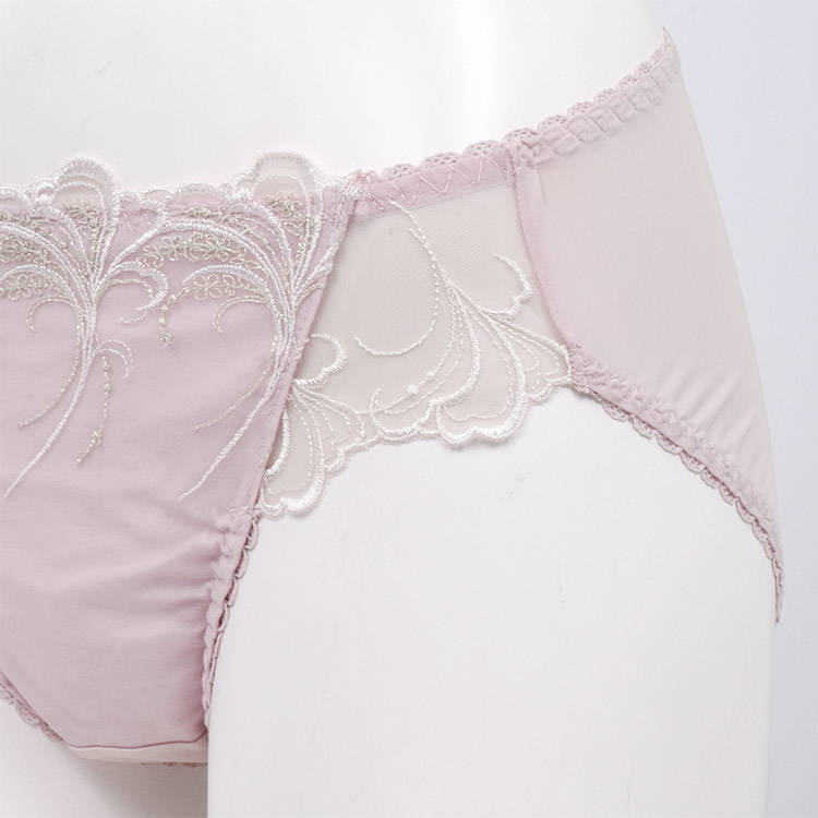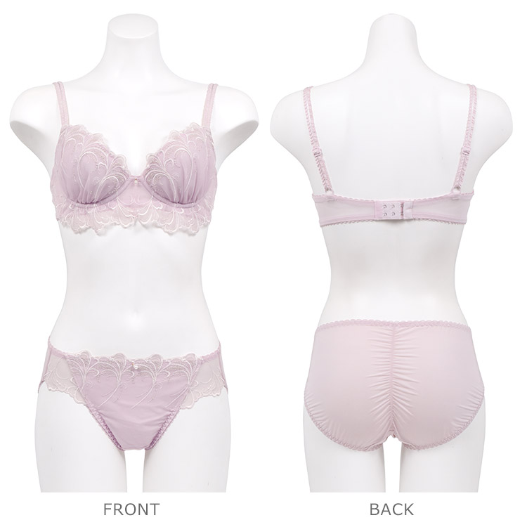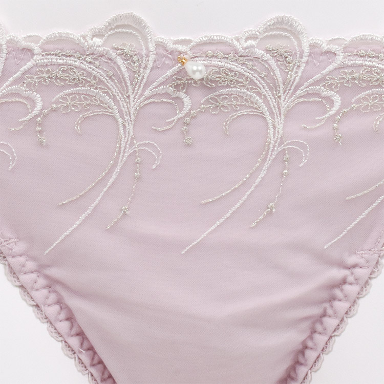 カップ表は流れるような刺繍がふんわりと柔らかい印象のギャザー仕上げ。