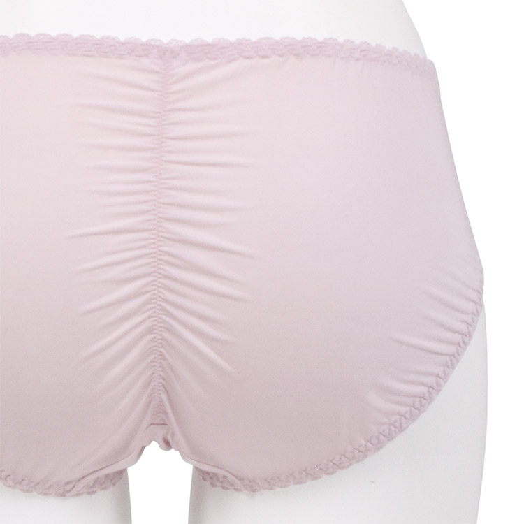 バックにはギャザーを入れて、ヒップを包み込み立体感がきれいに出る仕様。