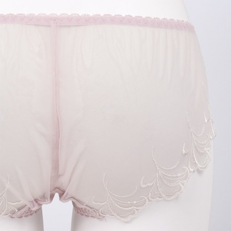 ヒップに食いこまないので、ゴムの跡がつきにくく段差もできない、履き心地の軽いショーツです。