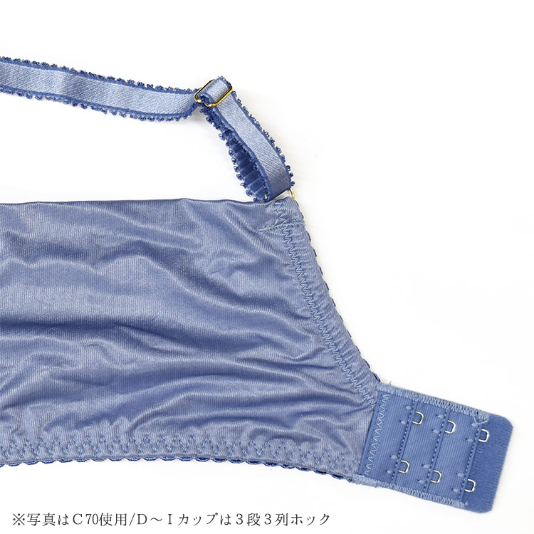 ホールド力のある国内産サテンネット・後ろホック クッション性・ずれにくさを兼ね備えたストラップ(裏側)