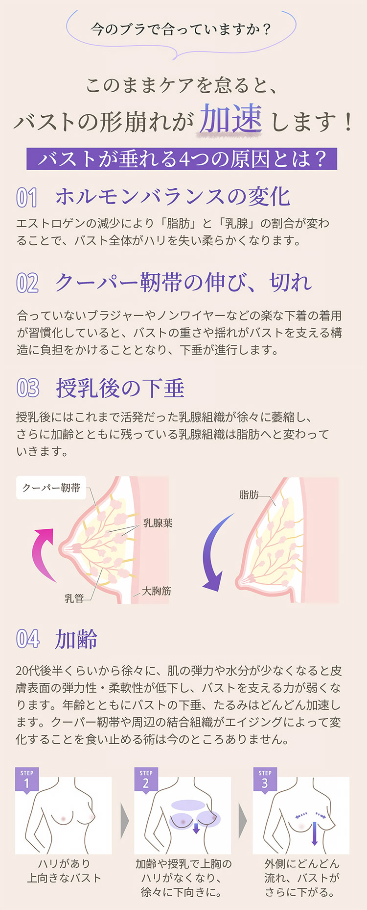 柔らかくなり離れてしまったバストを、本来あるべき正しい位置に補正して美胸をメイクする「ナイス谷間ブラ」