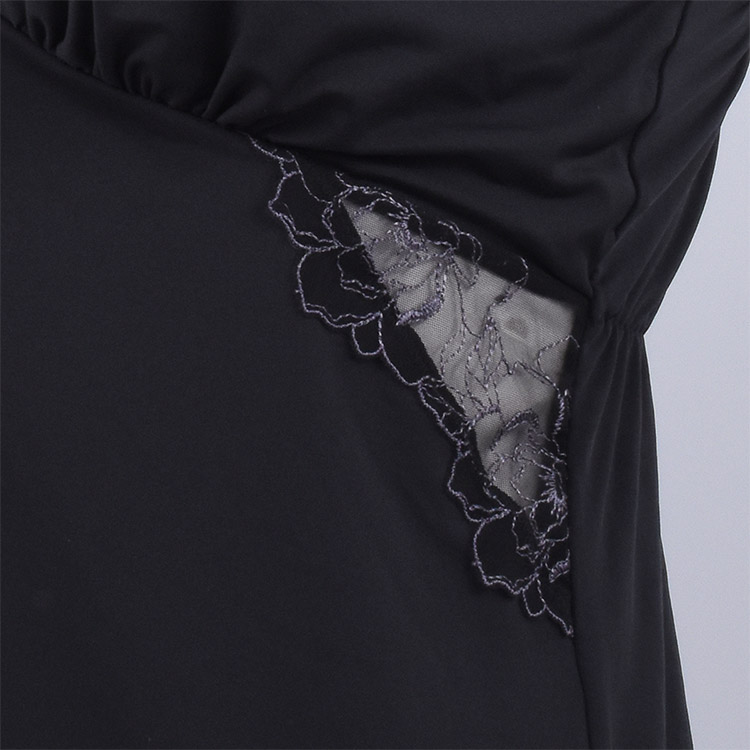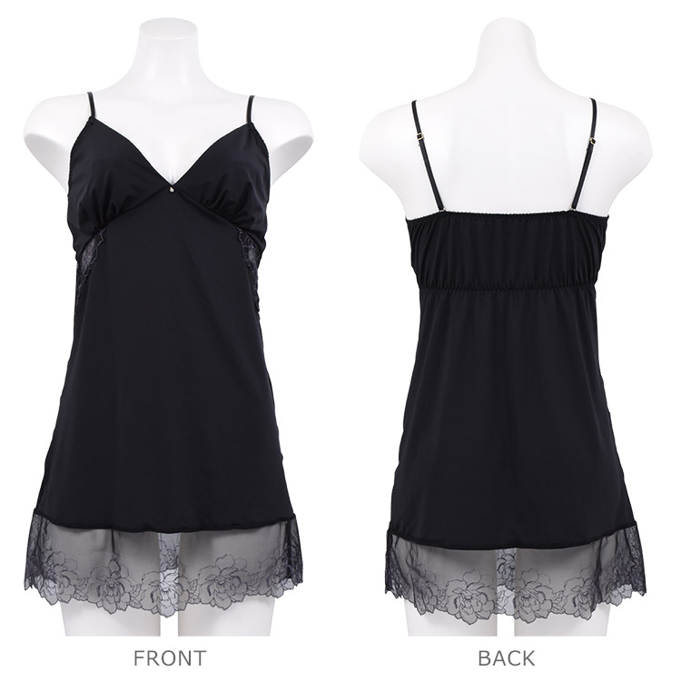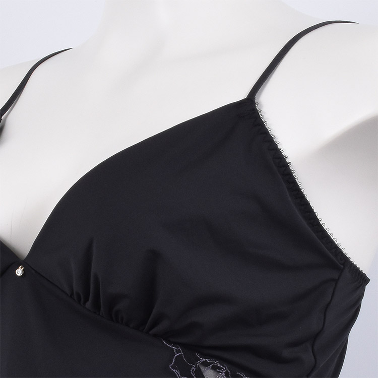 バスト下レース小窓で肌を艶魅せ、裾レースで足を艶魅せ、谷間を綺麗に見せるカッティングで胸もと艶魅せ、カップ部分はレースを貼らずつるっとする仕様で艶バストライン。