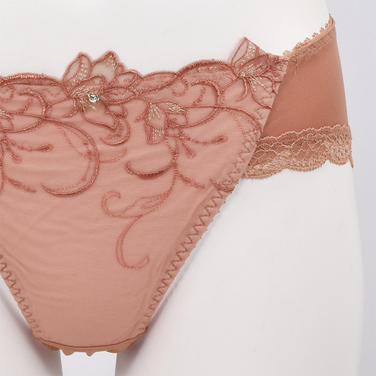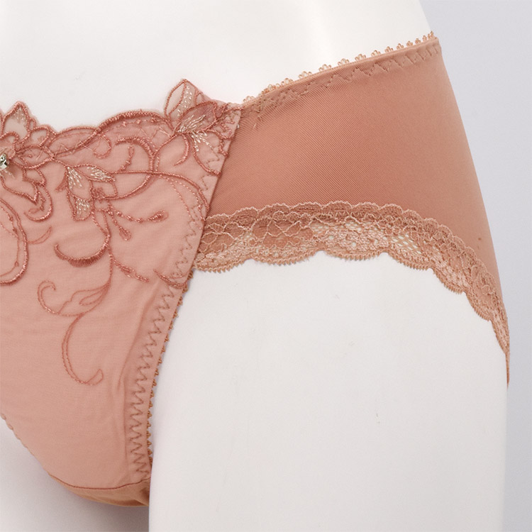 ヒップ下部まで包み込むパターンと、足繰りレースで綺麗なヒップラインをメイク。