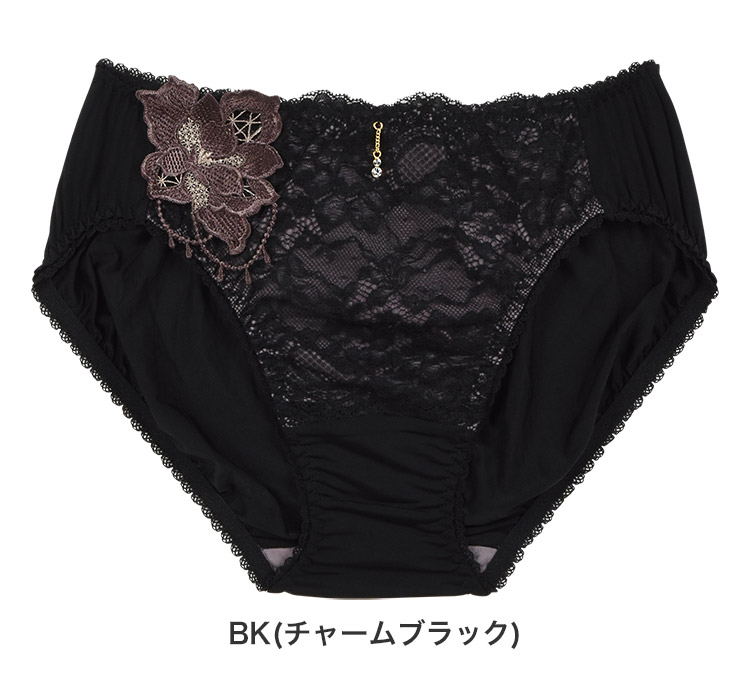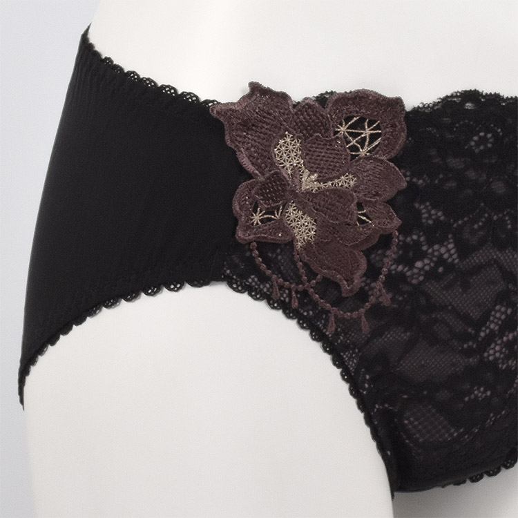 ヒップ下部まで包み込むパターンと、足繰りレースで綺麗なヒップラインをメイク。