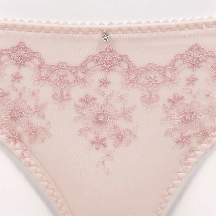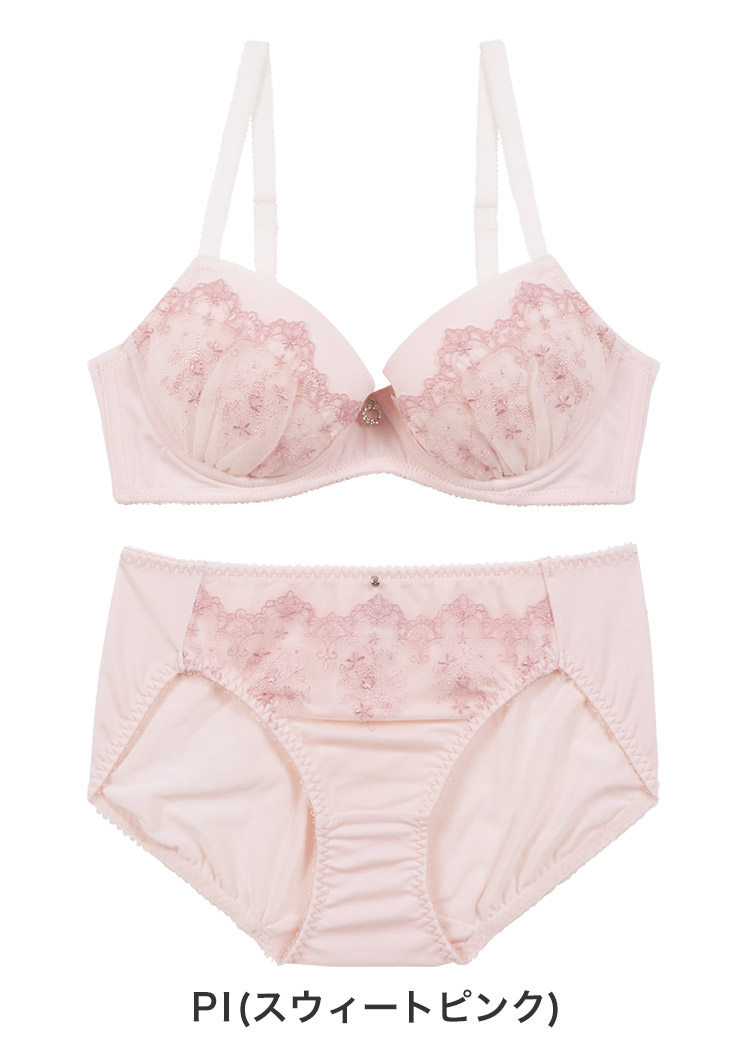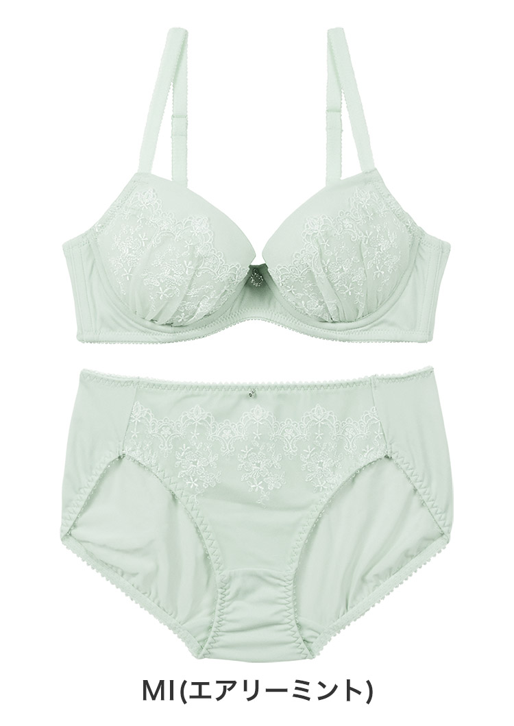 癒しのシルキーカラーに、アーチと小花の刺繍が可愛らしいデザイン。