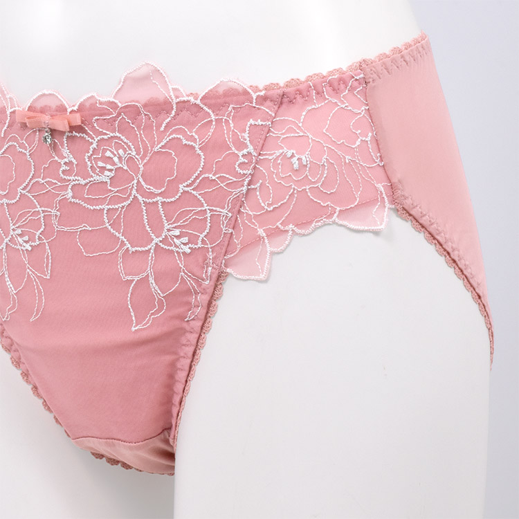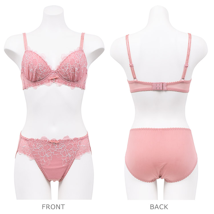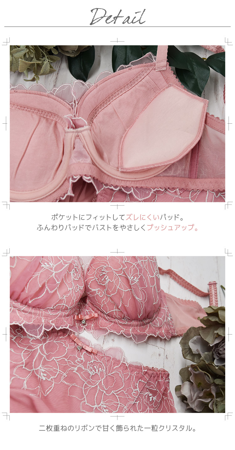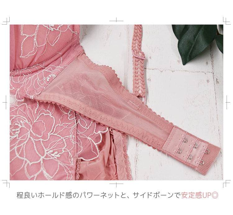 シンプルなつくりながら、カップやアンダー全体の刺繍が華やかで高級感のある印象。
