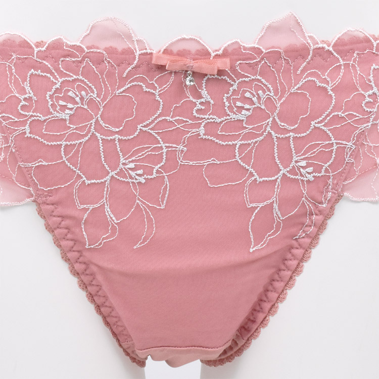 フロントはゴム部分にスカラップ、サイドはレースを切り替えて下向きスカラップの贅沢なデザイン。