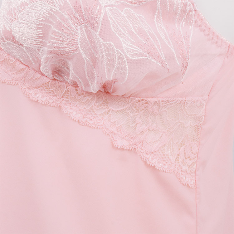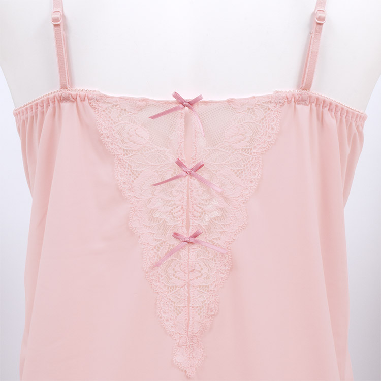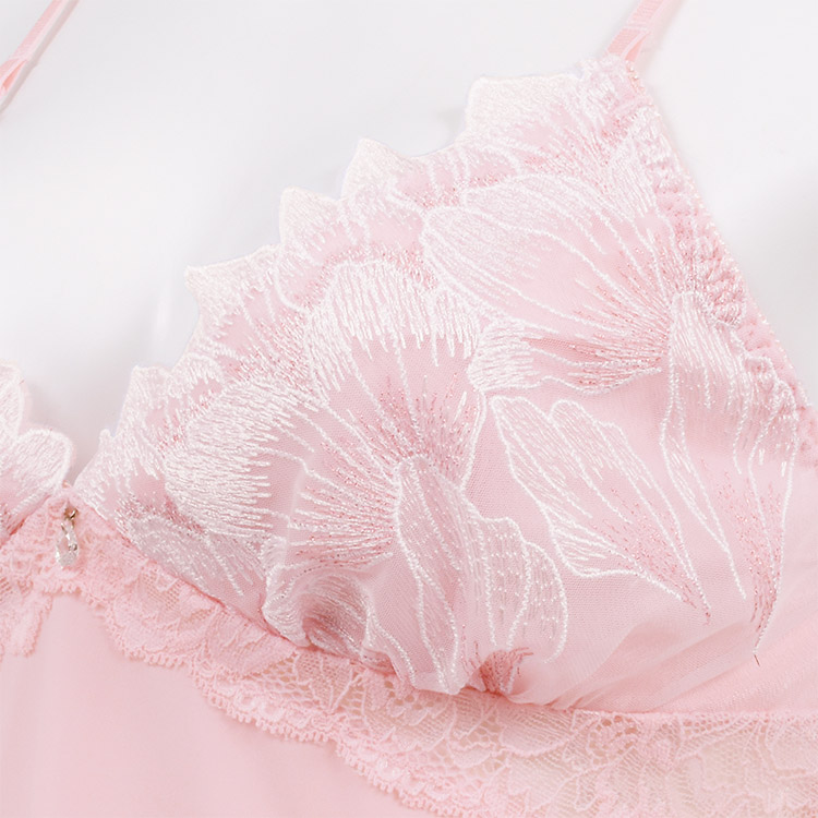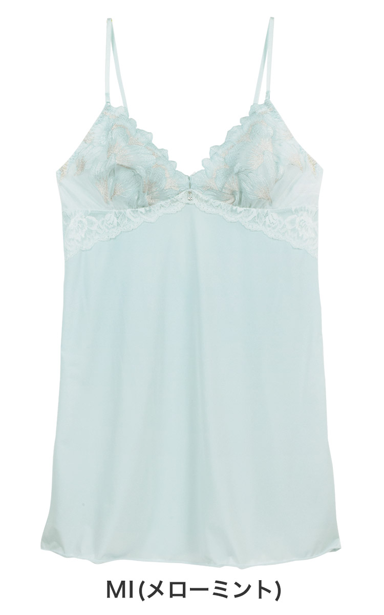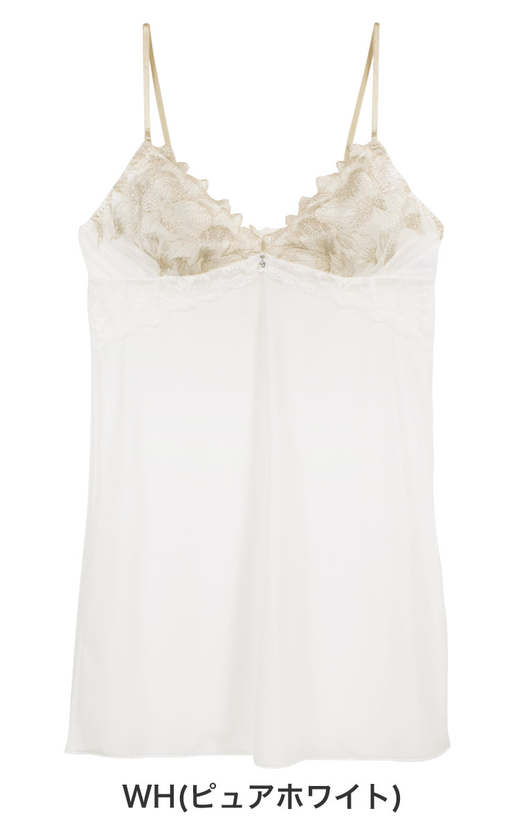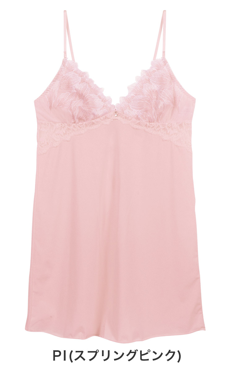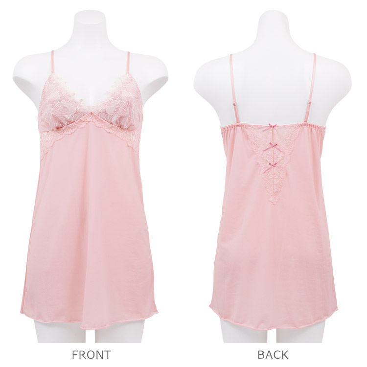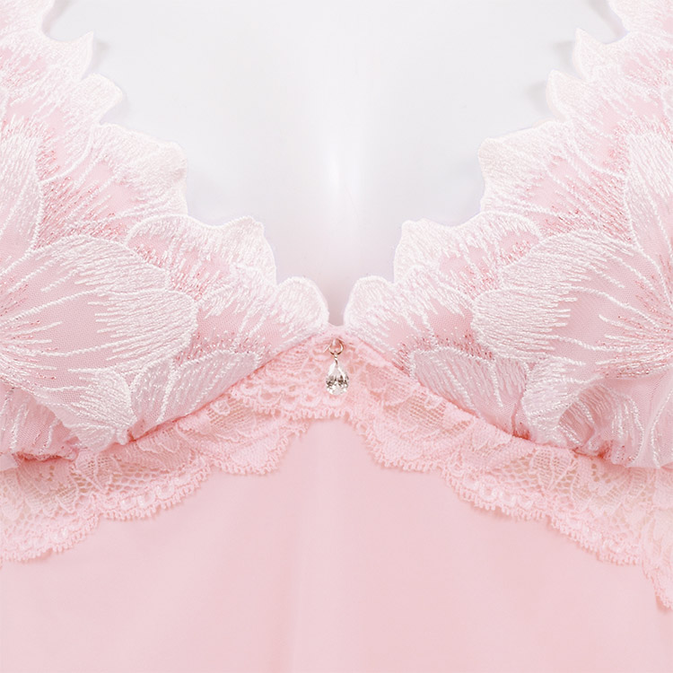 深めに入れたV字のレース窓には細幅リボンをあしらって乙女心をどこまでもくすぐるデザイン。