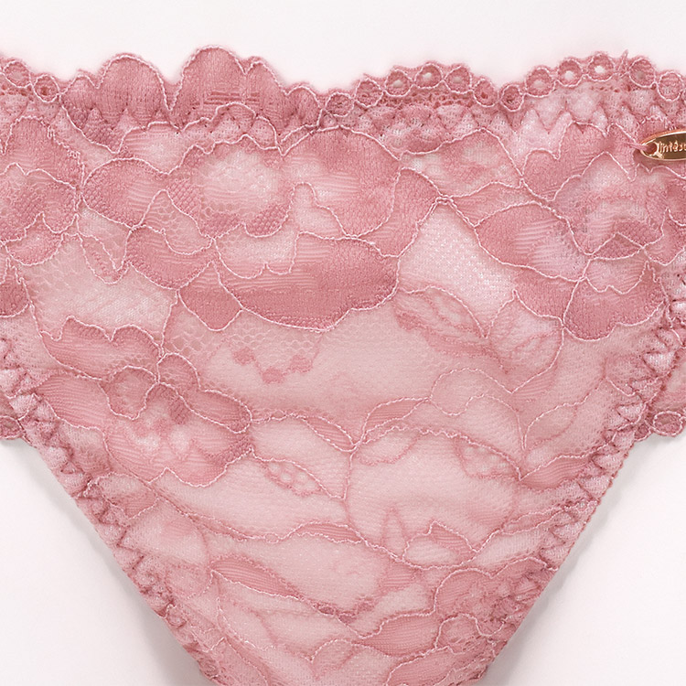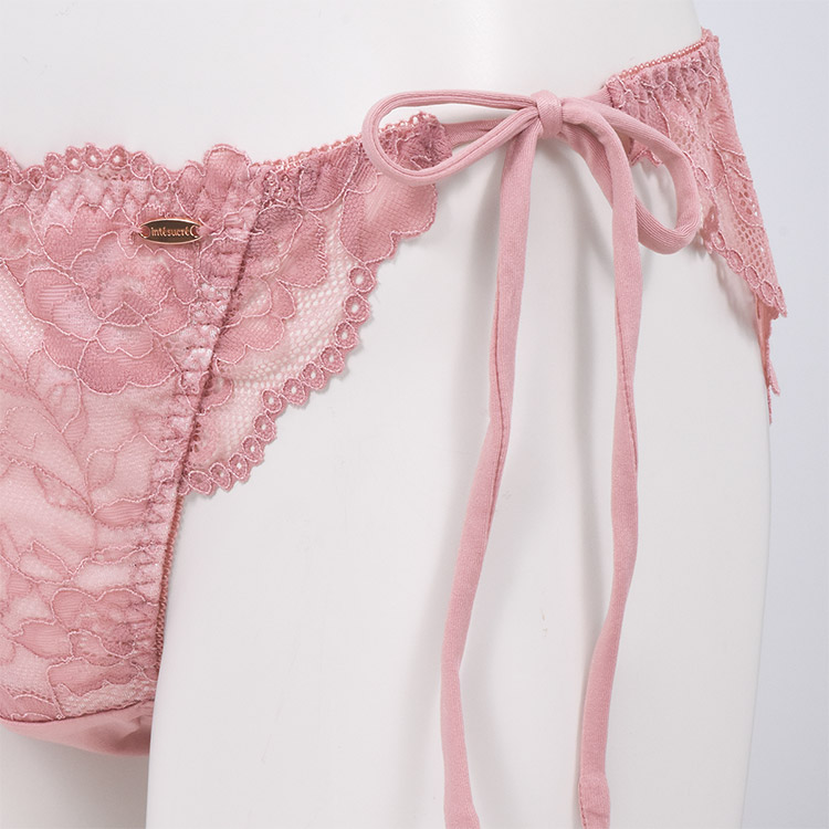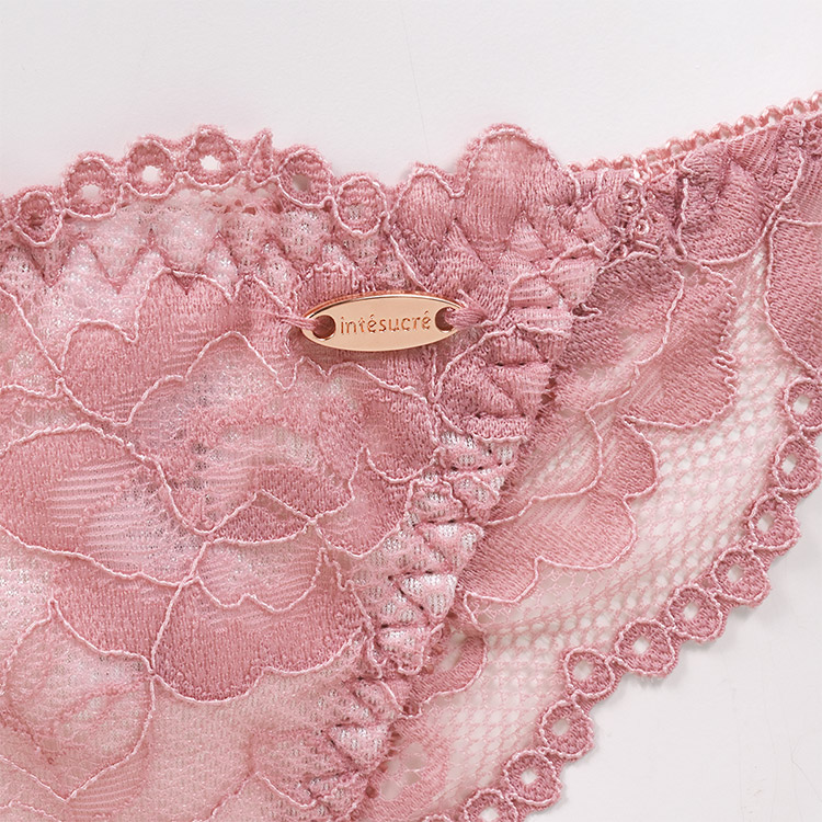 ブラとお揃いのintesucre(アンテシュクレ)のロゴ入りピンクゴールドのプレート付き。