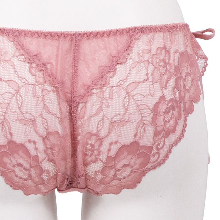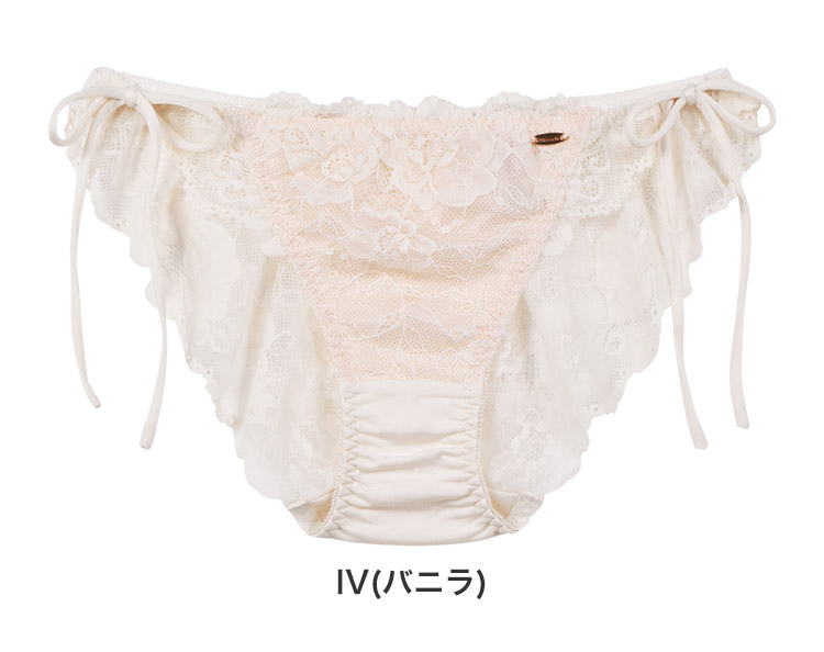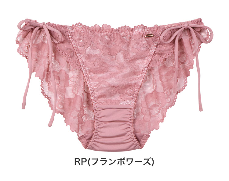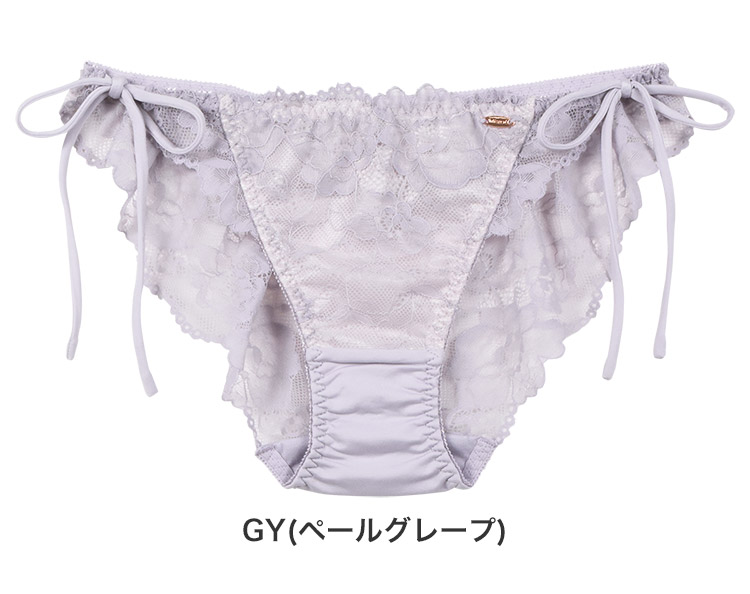 フェミニンと少しのセクシーさを兼ね揃えたいいトコどりデザインのバックレースサイドリボンショーツ。