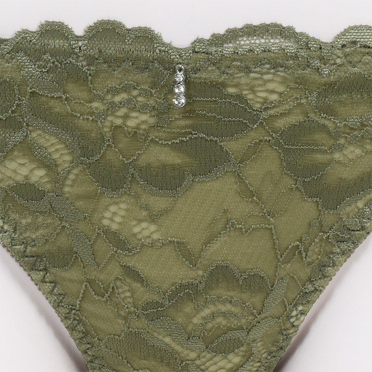 ブラとお揃いのラインストーンチャームで華やかな印象。