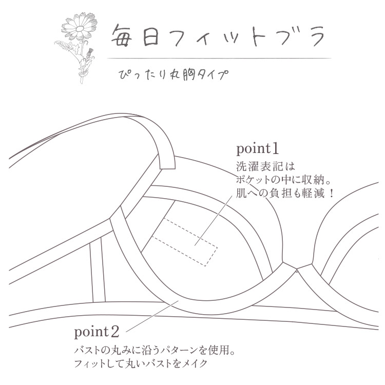 浅めのカップでフィット感も良く、浮きが気になりにくいタイプ。