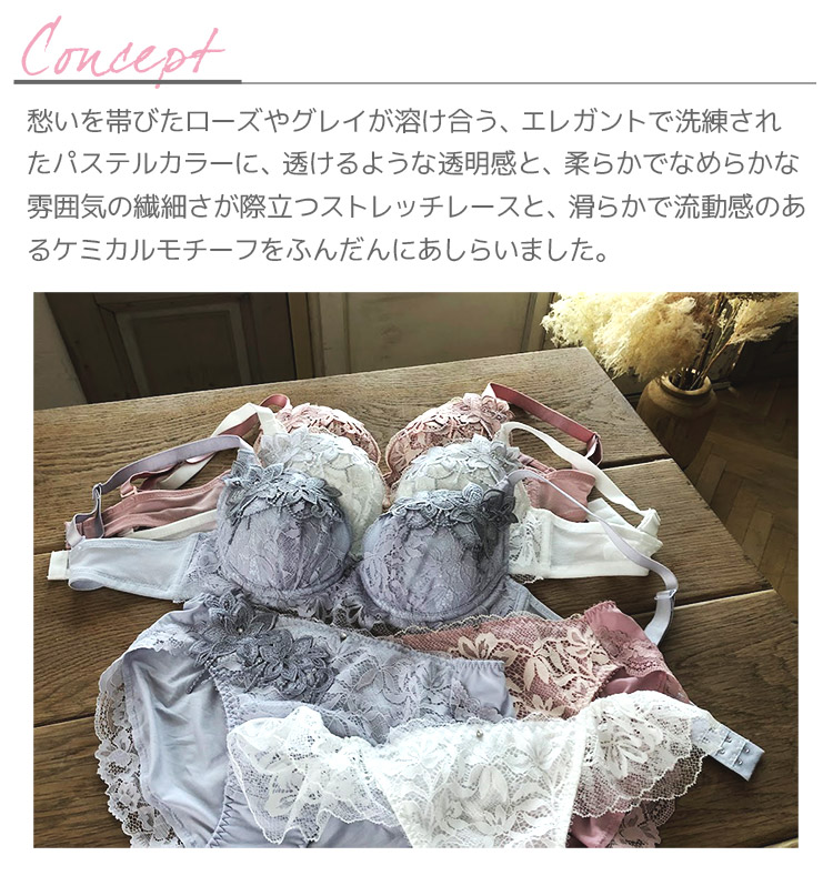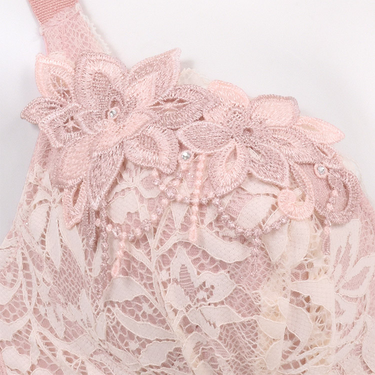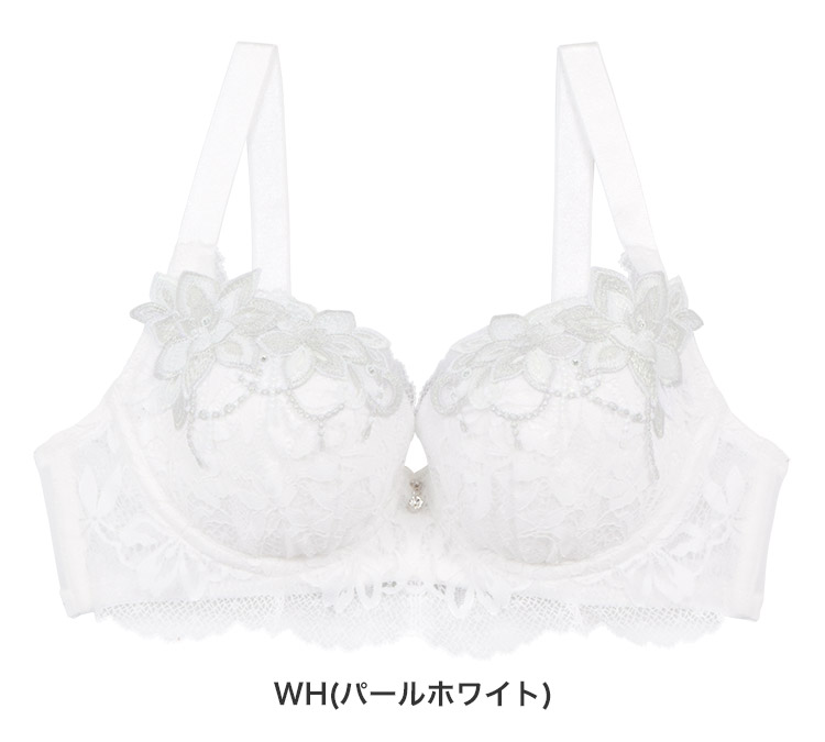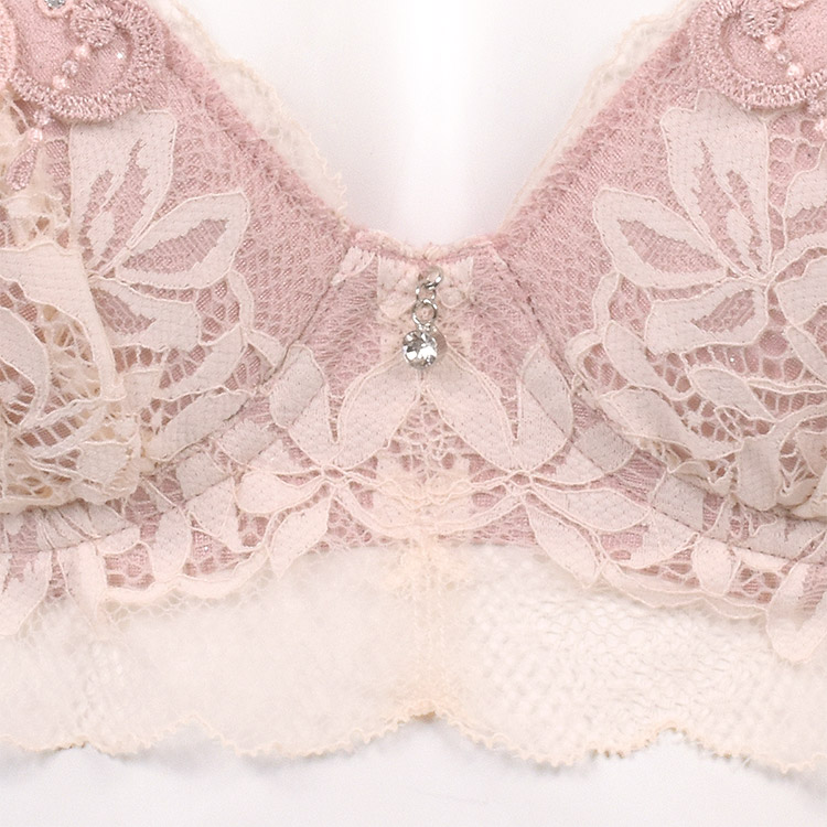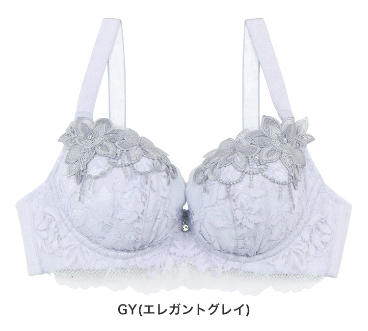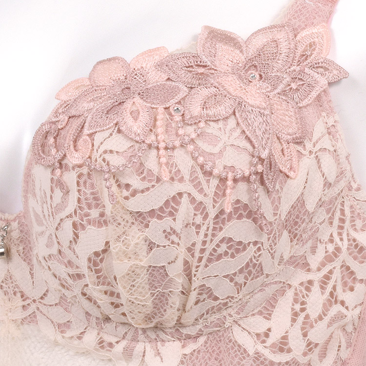 カップには柔らかく繊細さが際立つストレッチレースと、輝きが美しいストーンをあしらったフラワーモチーフをたっぷりと使用。