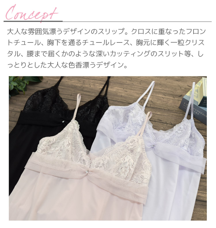 フリル感がカワイイブラショーツとは雰囲気をガラリと変えて、大人な雰囲気漂うデザインのスリップ。