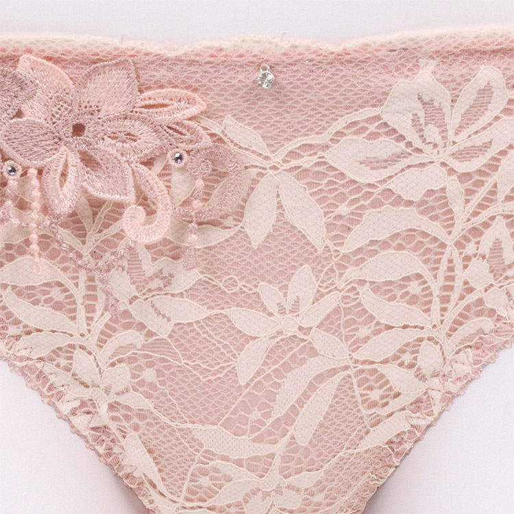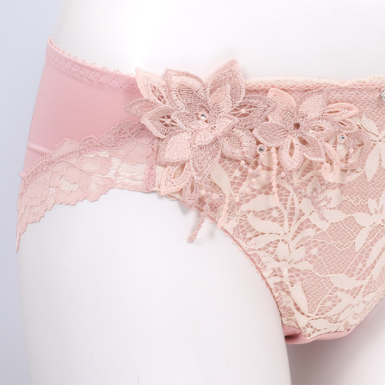 ヒップ下部まで包み込むパターンと、足繰りレースで綺麗なヒップラインをメイク。