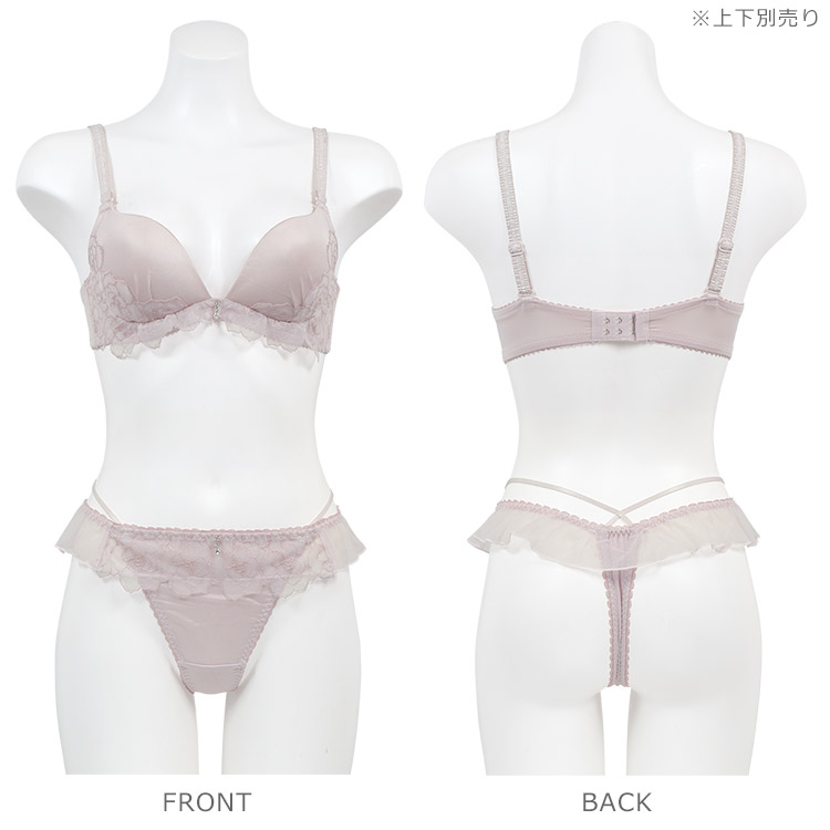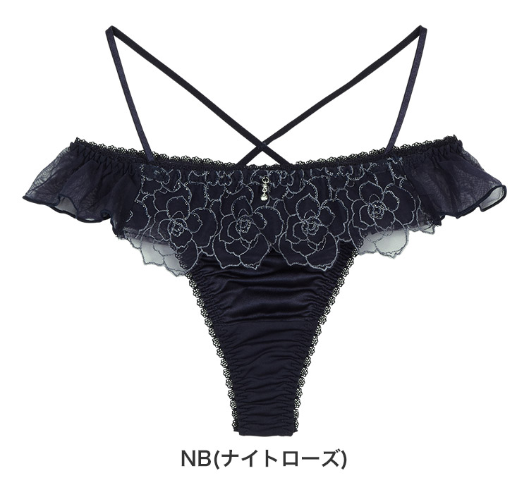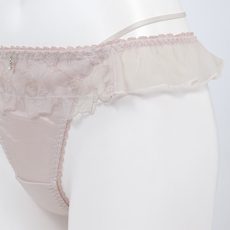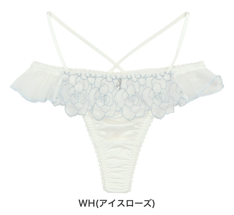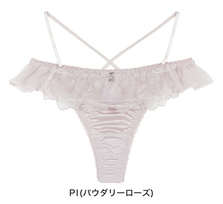 ギャザーを寄せてふわっとするチュールレースに腰ラインを沿う細めのループ、ロマンチックな雰囲気と艶やかな雰囲気が両立するデザイン◎
