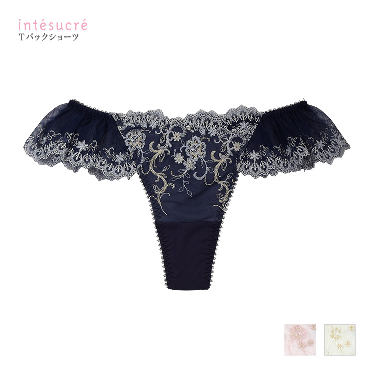 繊細なレースのフリルと相まって少し特別感のあるTバックショーツ。