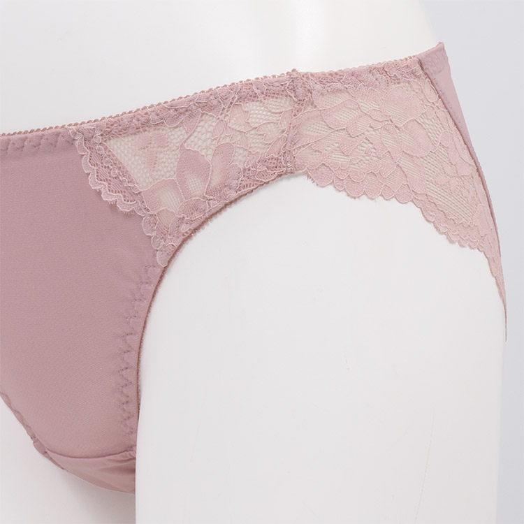 ラメ加工が施されたフロント部分と、ストレッチレースの透け感を組み合わせたデザイン。