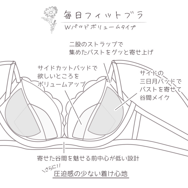 L字ワイヤーがサイドからバストを寄せて谷間をキレイにメイク。