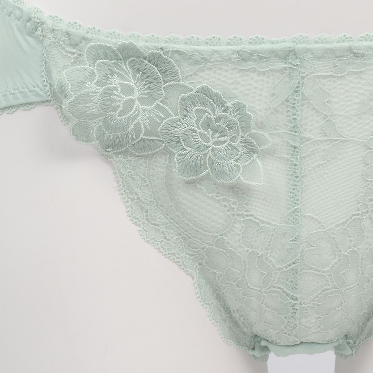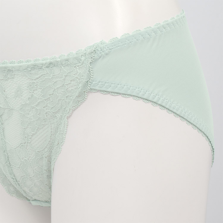 ヒップ下部まで包み込むパターンと、足繰りレースで綺麗なヒップラインをメイク。