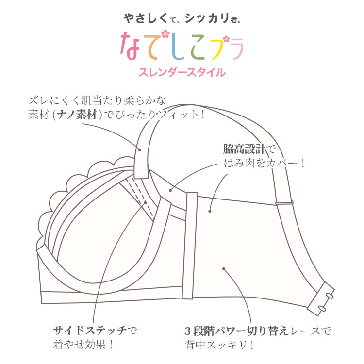IBT379|アンテシュクレ intesucre なでしこブラ スレンダースタイル ブラジャー単品 脇高 サイドすっきりメイク CDEFGカップ アンダー65/70/75cm